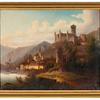 Johann Wilhelm Jankowski (ok. 1825–1870) Pejzaż romantyczny z zamkiem nad jeziorem.